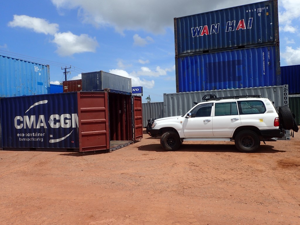 A 10 minute drive to the industrial side of town to the ANL depot (container shipping service), the truck needs a little prep before loading her into the container, the extra lift of the tyres and the tent & recovery box make the overall height exceed the limit which means these all need to be removed before we can load her into the can. Spanners at the ready in the 35-degree heat.